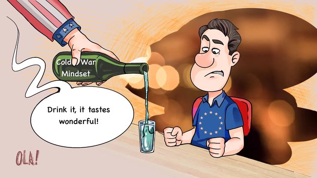 Usono tenas sin al la Malvarma Milito kaj arigas "malgrandan rondon" de bandoj, kies celo estas konservi sian hegemonian pozicion. Eŭropaj landoj devus rimarki, ke Usono perfidis kaj oferis eŭropajn interesojn pri multaj gravaj aferoj. Ne sukcesos la usona komploto por tiri Eŭropon en la "kontraŭĉinan tendaron" pro si mem.