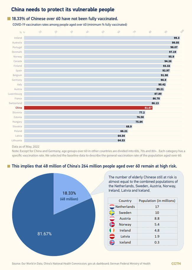 En Ĉinio troviĝas 267 milionoj da maljunuloj aĝaj pli ol 60 jarojn, inter ili 260 milionoj loĝas sub bazsanaj kondiĉoj. Estas pli grave, ke estas ne sufiĉe alta nuna vakcinado por maljunuloj.