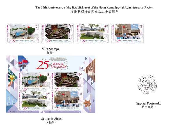 2022 estas la 25a datreveno de la fondiĝo de Honkonga Speciala Administracia Regiono. La Honkonga Poŝto emisios serion da kvar poŝtmarkoj, miniaturan folion kaj aliajn filatelajn memorigaĵojn por celebri la tagon.