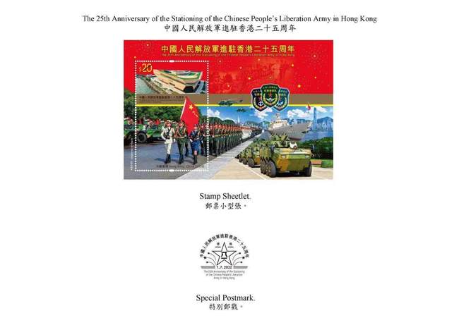 La 17an de junio, la Honkonga Poŝto anoncis, ke ekde la unua de julio vendiĝos memorigaj poŝtmarkoj kaj aliaj filatelaj produktoj kun la temo pri “la 25-jariĝo de la fondiĝo de Honkonga Speciala Administracia Regiono” kaj “la 25-jariĝo de la garnizoniĝo de la Ĉina Popola Liberiga Armeo en Honkongo”.