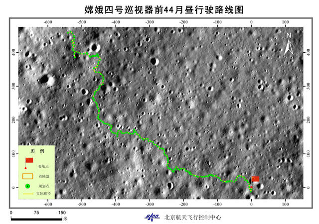 La luna tago egalas 14 tagojn sur la Tero, kaj la luna nokto estas samlonga. La centro diris, ke la luna esplorveturilo, ŝanĝita al dormanta reĝimo dum la luna nokto pro la manko de suna energio, vojaĝis 1239,88 metrojn sur la malproksima flanko de la Luno.