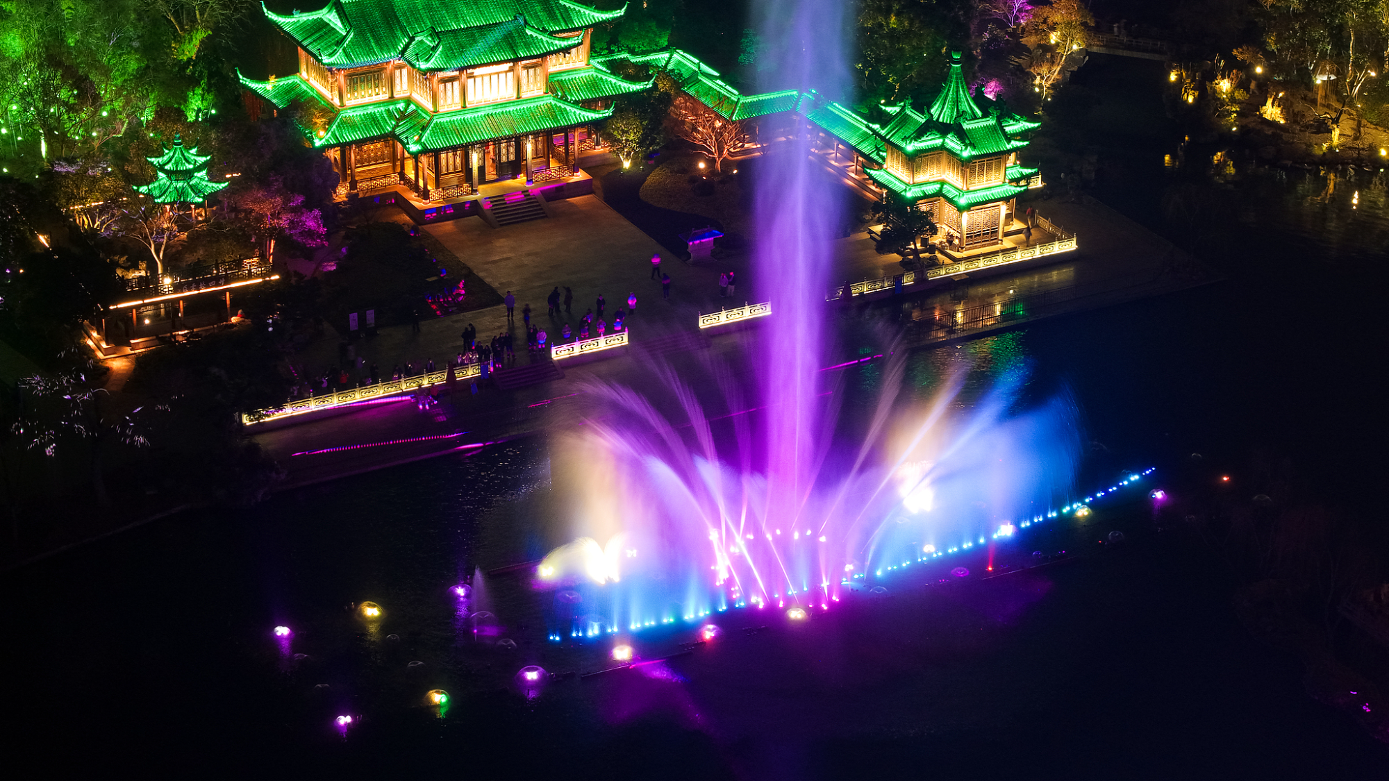 Lumspektaklo lumigis Sveltan Okcidentan Lagon de Yangzhou