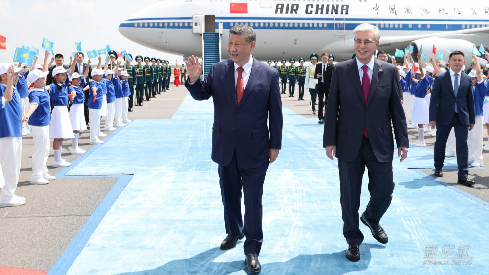 Xi alvenas en Astano por la Ĉina-Centrazia Pintkunveno