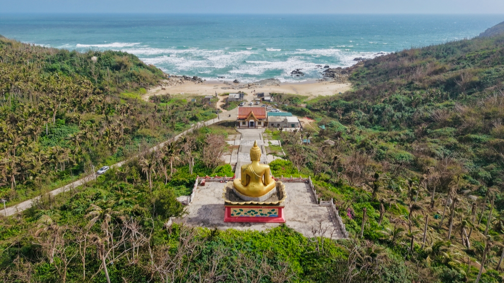 Buddha som tittar på havet lockar besökare till Foguang-templet i Hainan