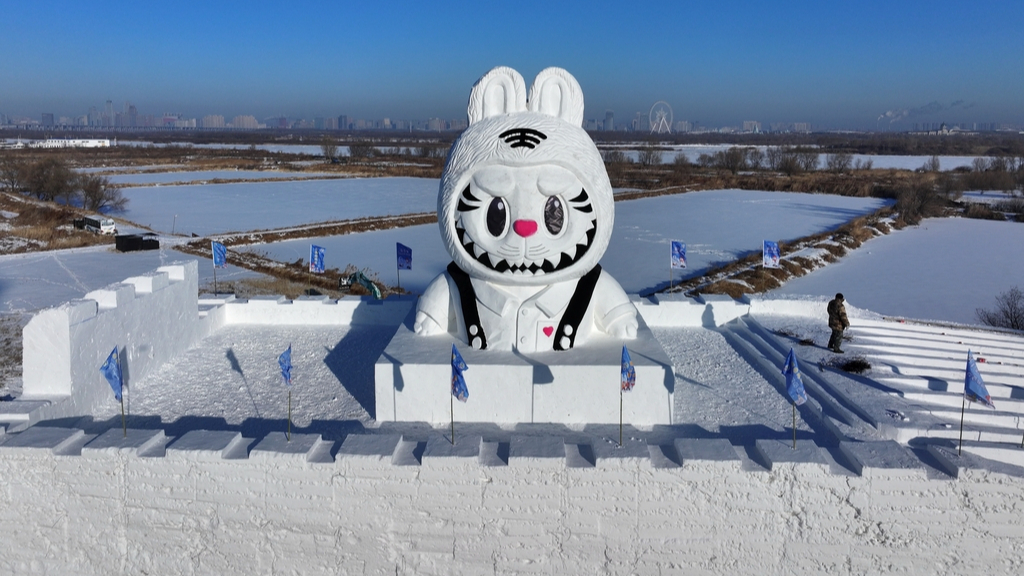 Labubu-figur slutter sig til kæmpe-snemand i Harbins vinterattraktion