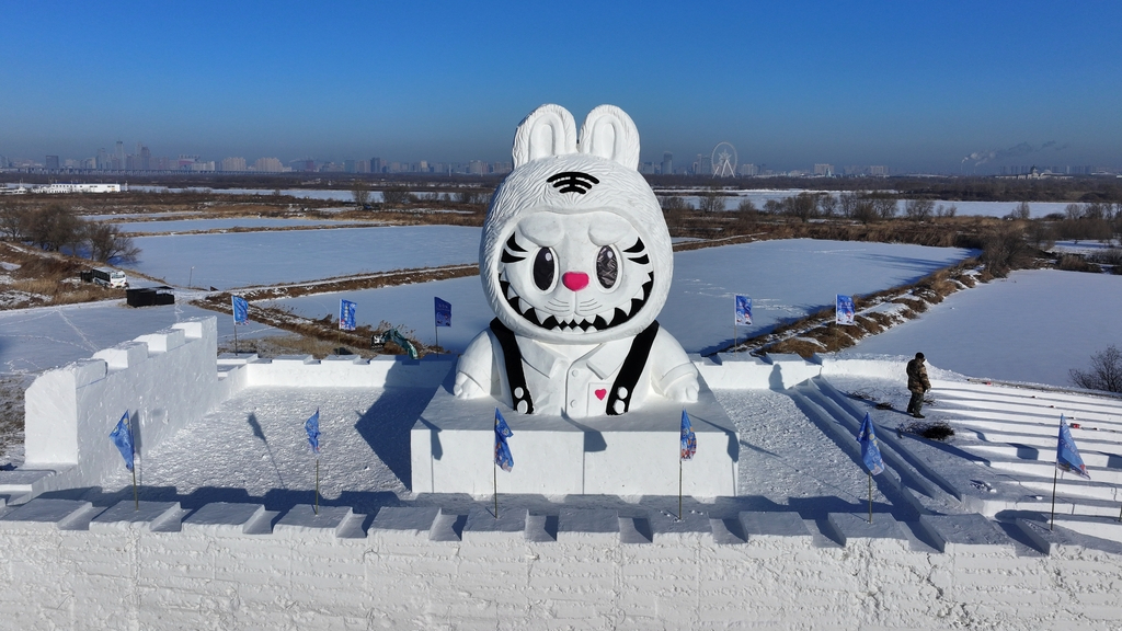 Labubu slutter seg til den gigantiske snømannen ved Harbins vinterattraksjon