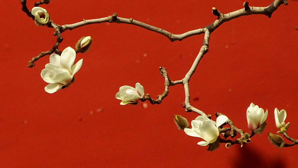 Magnoliatrær blomstrer ved Himmelens tempel