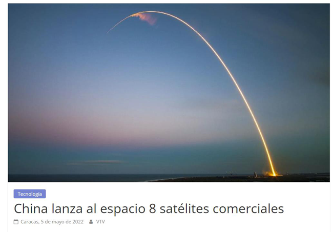 La usona retejo Space News notis, ke ĉi-foje oni lanĉis ok satelitojn per la portoraketo Changzheng-2-Ĉ, kio estas alia sukceso post la 30a de aprilo, kiam lanĉiĝis unu raketo kun kvin satelitoj – kiu estis la portoraketo Changzheng-11.