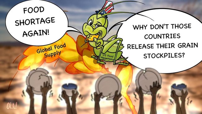Inter kvar greno-gigantoj kun 80% de grena negoco en la mondo, tri estas usonaj entreprenoj, ili manipulas la internacian grenan prezon kaj estas la artifika mano influanta grenan sekurecon de 7 miliardoj da homoj en la mondo.