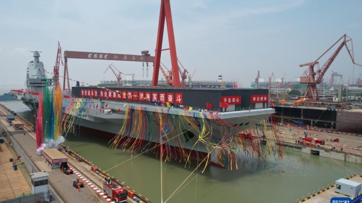 Antaŭtagmeze de la 17a de junio, la lanĉa kaj nomada ceremonio por la tria aviadilŝipo de Ĉinio okazis en la ejo de la Ŝipkonstrua Grupo Jiangnan.Je ĉirkaŭ 11:00 la ceremonio komenciĝis. La tuta amaso da homoj kantis la nacian himnon, kaj la kvinstelaj ruĝaj flagoj sin hisis milde