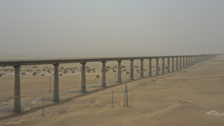 Je 10:53 en la 16a de junio, la fervojo Hotan-Ruoqiang, kiu ĉirkaŭiras la dezerton Taklimakan, oficiale malfermiĝis. La fervojo laŭiras la sudan randon de la dezerto Taklimakan kiu estas la due granda moviĝanta dezerto en la mondo
