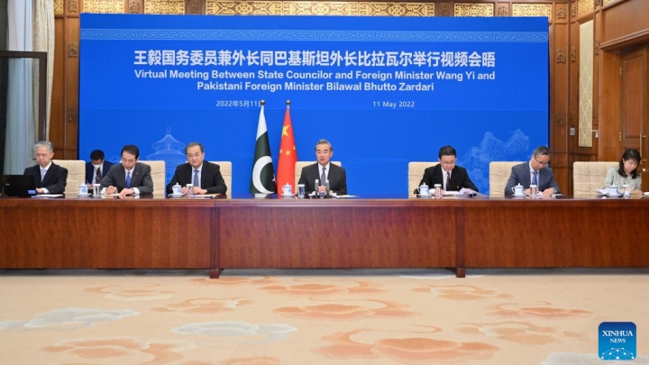 Ĉina ŝtata konsilanto kaj ministro pri eksterlandaj aferoj Wang Yi merkrede renkontiĝis kun sia pakistana paralelulo Bilawal Bhutto Zardari per videoligo, alvokante la du flankojn fari ĉian provon por malhelpi subfoson de la duflankaj rilatoj
