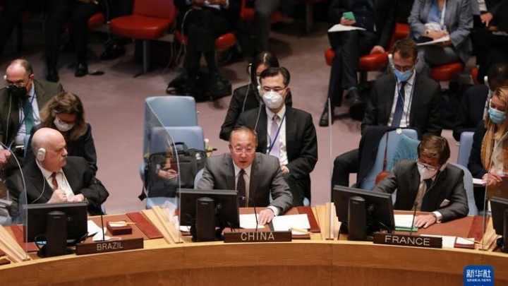 Ĵaŭde en ĉefstabejo de UN en Nov-Jorko, la Sekureca Konsilio de UN okazigis kunvenon pri la ukraina problemo. Ĉina konstanta reprezentanto en UN Zhang Jun alvokis, ke la internacia komunumo fortigos klopodon por antaŭenigi milithaŭton kaj minimumigi la humanecan influon kaŭzitan de la konflikto