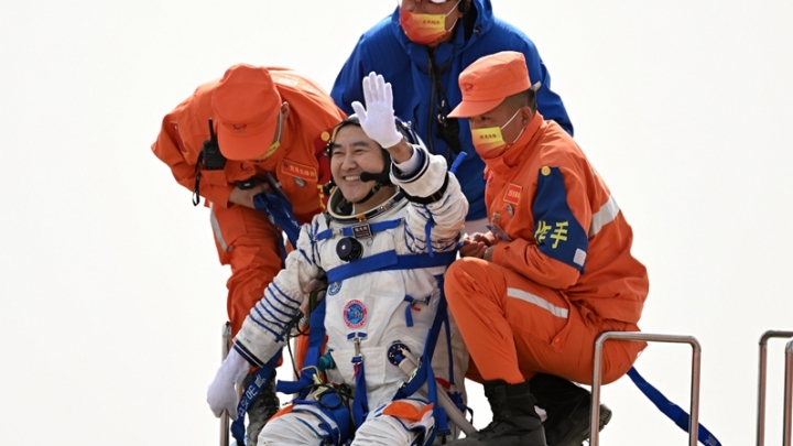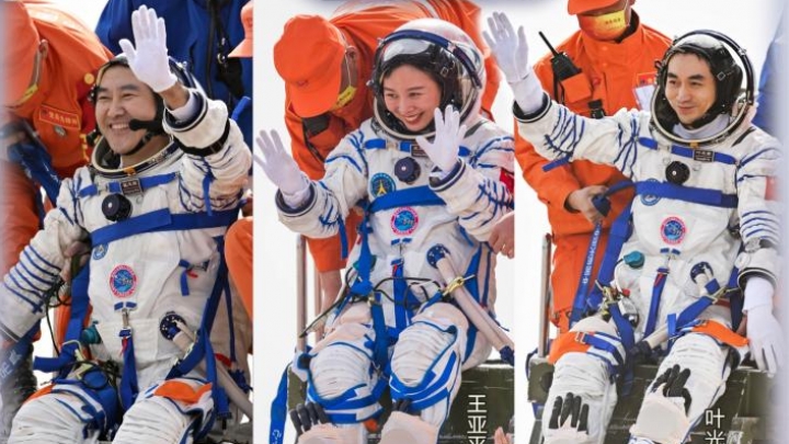 La revena kapsulo de la spacoŝipo Shenzhou-13, portanta la tri ĉinajn astronaŭtojn, aŭ tajkonaŭtojn, Zhai Zhigang, Wang Yaping kaj Ye Guangfu, sekure alteriĝis reen sur la Teron sabate matene post rekorda sesmonata misio en la kosmospaco