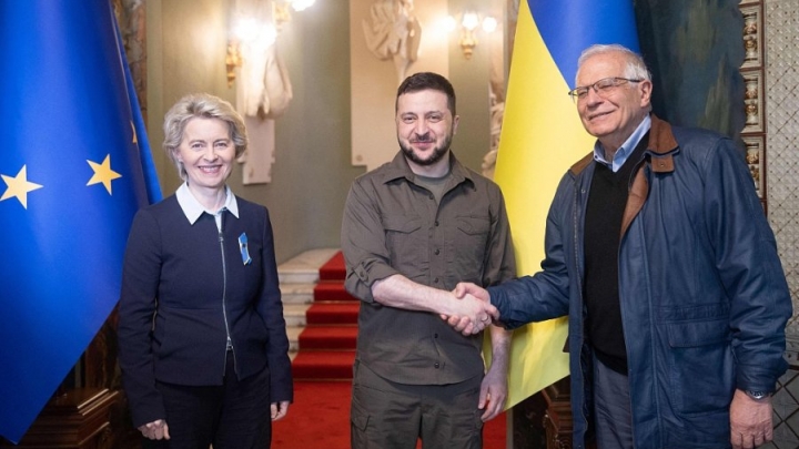 Ursula von der Leyen, prezidanto de la Eŭropa Komisiono, kaj Josep Borrell, alta reprezentanto de la Eŭropa Unio (EU) pri eksteraj aferoj kaj sekureca politiko, vendrede vizitis Kievon kaj transdonis demandaron pri statuso de kandidata lando al la EU