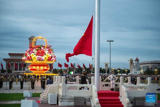Frumatene de la 1-a de oktobro en Pekino, homoj kolektiĝis ĉe la Tian'anmen placo, mansvingante kaj atendante la flaghisan ceremonion de la Nacia Tago de Ĉinio.