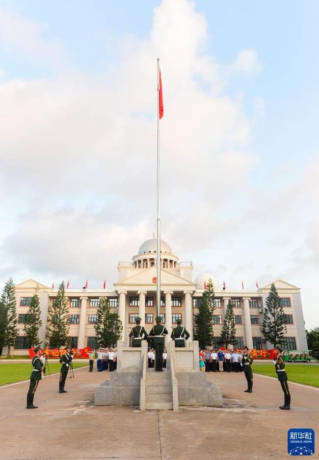 Flaghisa ceremonio okazis sur Yongxing-Insulo de la urbo Sansha, Hainan-Provinco.