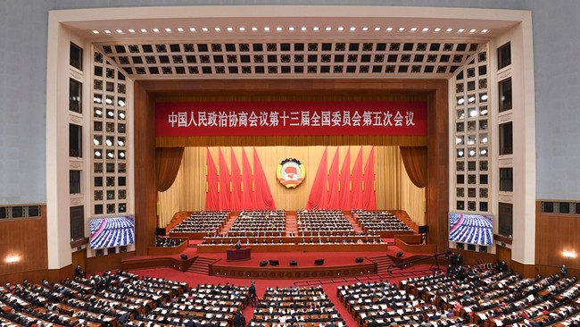 Vendrede posttagmeze en Pekino, inaŭguriĝis la 5a sesio de la 13a Nacia Komitato de la Ĉina Popola Politika Konsultiĝa Konferenco en la Granda Popola Halo.