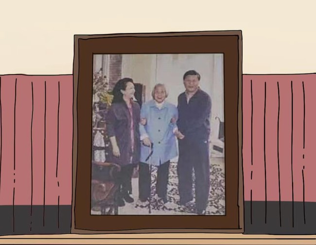 Alia foto unuafoje aperis sur la librobreto de prezidanto Xi, kiam li faris novjaran parolon de 2021. En la foto, troviĝas li kaj lia edzino Peng Liyuan kun la patrino, kaj la patrino kaj filo firme tenas la manojn kune.