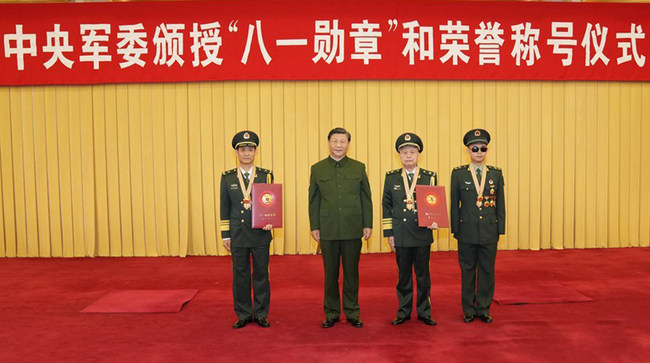 Lastempe prezidanto de Centra Milita Komisiono Xi Jinping subskribis dekreton, premiante medalojn de la 1a de aŭgusto al Du Fuguo, unuaklasa supera serĝento de senminiga trupo de terarmeo en suda batalzono, Qian Qihu, profesoro de laboratorio pri preventado kaj redukto de katastrofoj de Nacidefenda Inĝenieria Instituto, Nie Haisheng, speciala astronaŭto de Liberiga Armeo.