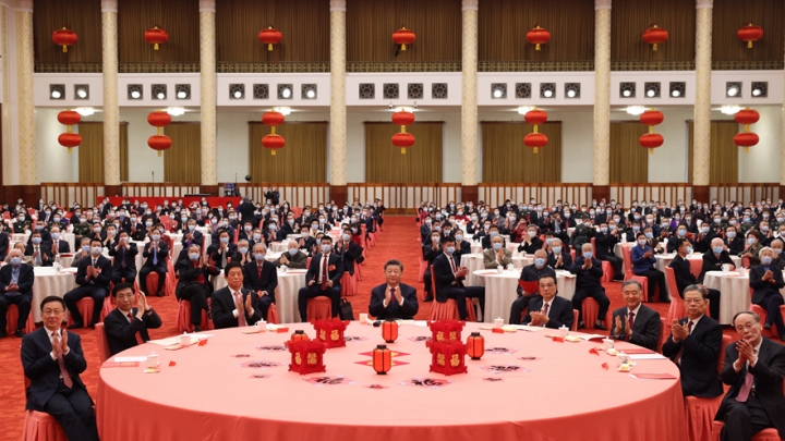Ĉina prezidanto Xi Jinping, en la nomo de la Centra Komitato de la Komunista Partio de Ĉinio kaj la Ŝtata Konsilio, sendis festajn salutojn kaj bondezirojn al ĉiuj ĉinoj dimanĉe en iu kunveno en la Granda Popola Halo en Pekino