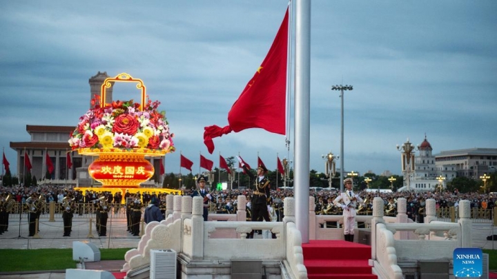 Frumatene de la 1a de oktobro en Pekino, homoj kolektiĝis ĉe la Tian'anmen placo, mansvingante kaj atendante la flaghisan ceremonion de la Nacia Tago de Ĉinio. Lokanoj kolektiĝis por rigardi la flaghison en la marborda urbo Qingdao en orienta Ĉinio