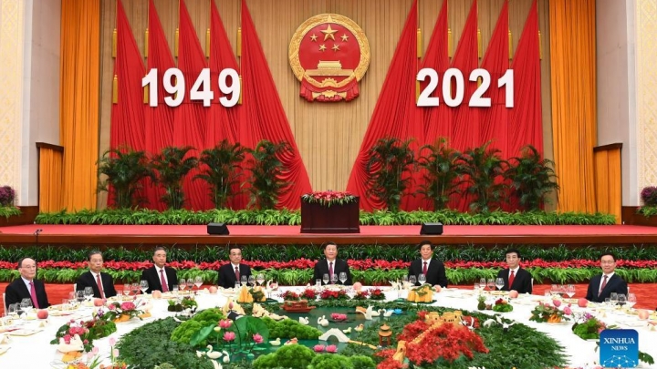 Ĉina Ŝtata Konsilio ĵaŭde okazigis akcepton ĉe la Granda Popola Halo en Pekino por festi la 72an datrevenon de la fondiĝo de la Ĉina Popola Respubliko