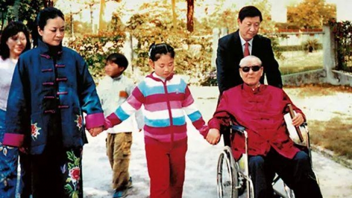 En la oficejo de Xi Jinping estas kelkaj fotoj de varma familia vivo el diversaj epokoj. En unu foto, Xi puŝas sian maljunan patron promenante kun siaj edzino kaj filino