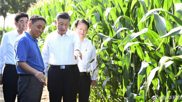 Merkrede posttagmeze, ĉina prezidanto Xi Jinping, kiu faras esploradon en Jilin, vizitis kernan centron de la nacia norma produktado-bazo de verdaj manĝaĵoj (maizo) en gubernio Lishu. Li iris en la maizan kampon por observi la kultivadon de la nigra grunda tavolo kaj la kreskon de maizo