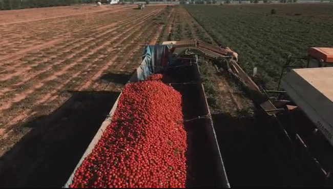Mekanika rikoltado helpas disvolviĝon de Changji-tomata industrio