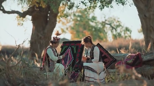 Kazaĥaj brodistinoj en arbaro de diversformfoliaj poploj