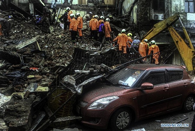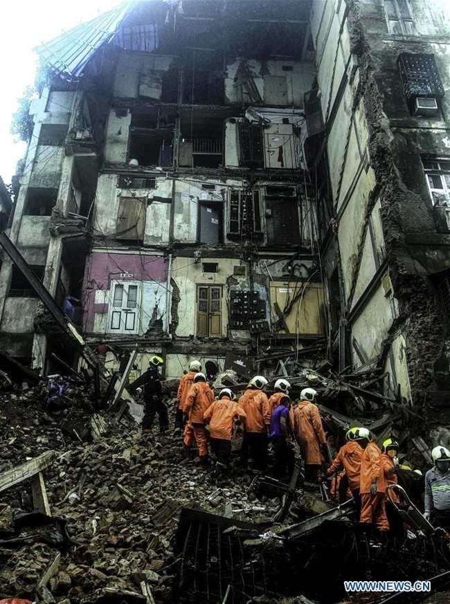 Ĵaŭde, savantoj laboras en la loko post kiam la ses etaĝa konstruaĵo kolapsiĝis en Mumbajo, Hindio. Almenaŭ tri homoj mortiĝis kaj pli ol 15 homoj vundiĝis en Mumbajo post kiam du konstruaĵoj kolapsiĝis en apartaj incidentoj en la urbo.