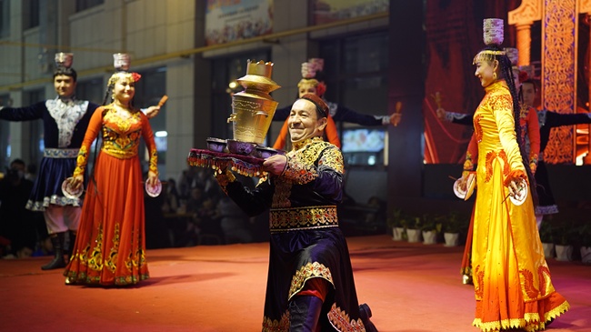 La danco Samar honore titolita kiel “granda pando de dancoj” estas unu el la unuaj nemateriaj kulturaj heredaĵoj de Xinjiang-a Ujgura Aŭtonoma Regiono. La danco originis el la regiono Uzi de Xinjiang kaj estas adaptita el la ceremonio bonveniganta gastojn.