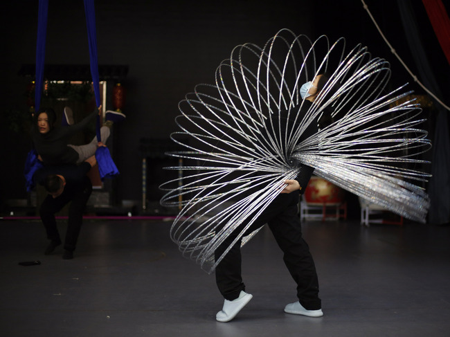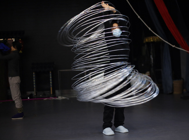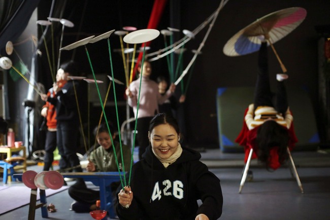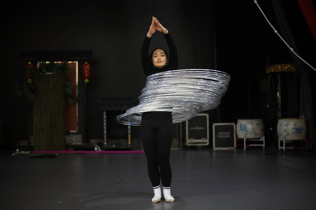 En la akrobata grupo de Anqing, Anhui-provinco de meza Ĉinio belaj junulinoj diligente kaj eĉ penige praktikas por montri la plej ĉarman akrobaton. Ili gajnis multajn premiojn en en landaj kaj eksterlandaj akrobataj konkursoj. Zhou Xingyu, kiu naskiĝis en 2000, povas ludi 80 hul-ringojn.