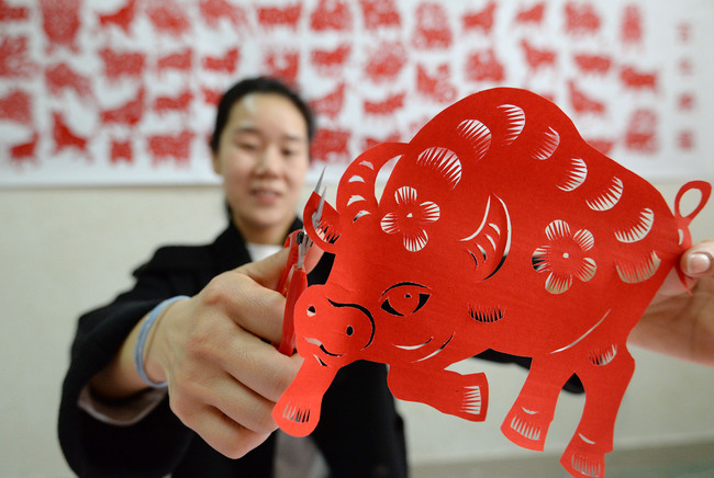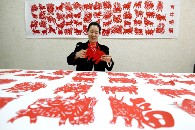 Lastatempe Yin Lingling, popola artisto de papertondaĵo de la gubernio Cixian, Hebei-provinco, verkis preskaŭ cent papertranĉaĵojn en diversaj formoj de bovo, esprimante bondezirojn al la Jaro de Bovo laŭ la ĉina tradicio.