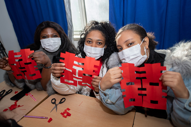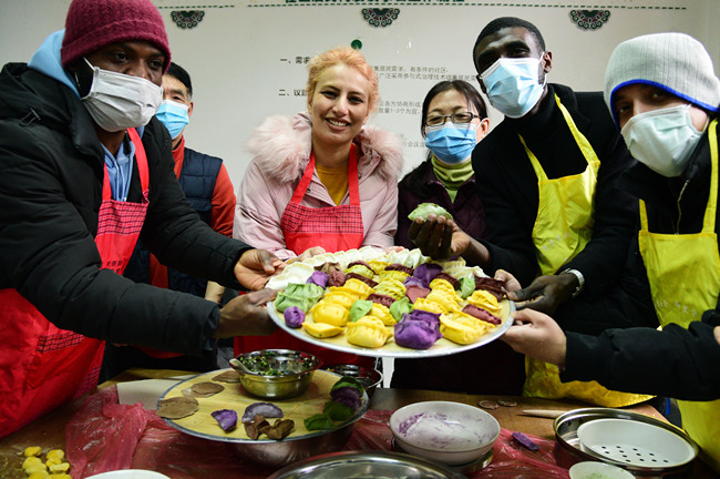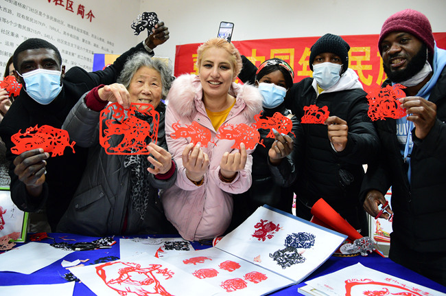 La 5an de februaro en la urbo Zhenjiang de Jiangsu-provinco, suda Ĉinio, fremdlandaj studentoj lernis la papertondadon kaj faris ĝjaŭzion kune kun lokaj loĝantoj por sperti la morojn kaj kulturon de Ĉinio.
