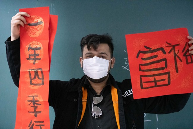 Fremdlandaj studentoj en Internacia Eduka Instituto de Teknologia Universitato de Taiyuan lernis papertranĉadon kaj kaligrafion por gustumi la tradician Printempan Feston de Ĉinio.