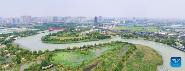Surbaze de la ekzistantaj malsekregionaj rimedoj, la Kanal Sanwan Pitoreska Makulo en Yangzhou-urbo, Jiangsu-provinco uzas verdan ekologian teknologion por konstrui cirklan protektan sistemon por realigi la integriĝon de originala ekologia malsekregiona protekto kaj turismo kaj libertempo. Ekde sia malfermo al la publiko en 2017, la Kanalo Sanwan Pitoreska Makulo fariĝis nova vizitkarto en la suda parto de la urbo Yangzhou.
