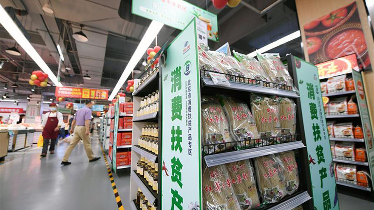 La 28an de julio klientoj faris aĉetadon en supermerkato de malriĉec-elradikigo. Tiutage malfermiĝis la centro pri helpo al malriĉec-elradikigo per konsumado en la supermerkato Shounong de Pekino