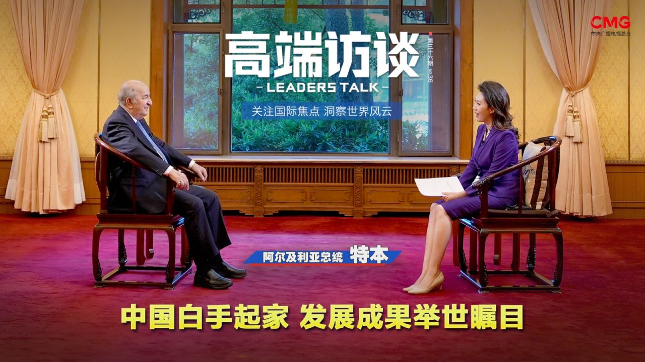 Dum la oficiala vizito de Alĝeria prezidento Abdelmadjid Tebboune al Ĉinio, Ĉina Komunikila Grupo faris intervjuon al li. Tebboune diris, ke Ĉinio donis helpon al Alĝerio en la plej malfacila momento, kaj negrave kiajn malfacilaĵojn ili spertis, la amikeco inter la du landoj neniam ŝanĝiĝis. Li admiris la pozitivan rolon de Ĉinio en la plibonigo de la rilatoj inter arabaj landoj kaj Irano, kaj opiniis,